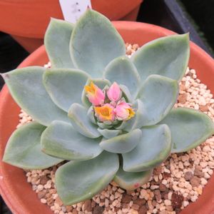 スノーエリアンの花が咲いた。珍しく花芽が伸びないタイプらしく,成長点付近で咲いて花の中で花が咲いたような形になった。