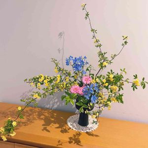雪柳の枝がいい曲がり具合いだったので、大ぶりにいけてみました。 春風になびいている感じ、出ているかな・・・?
