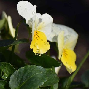 〓夕方の投稿便🚚〓 水やり後の🤍💛ビオラさん💛🤍 天然ダイヤも散りばめられていますが、 ダイヤとなれば話は別😁 落ちない間に(っ'-' )╮ =͟͟͞͞◒ GETだぜ!😂🤭