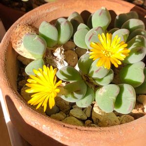 💚コノフィツム花園✨Conophytum”Hanazono”✨ この2〜3日の陽気で急に花芽が上がってきて咲き始めました☺️💖 去年と花のカタチが違う❓😮😀🎶❣️💕 お水を少々厳しめにしてるからかなぁ?🤔