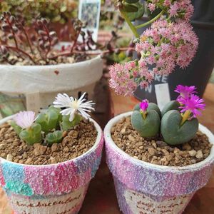 お目当の園芸店はお休みで、帰りに寄った西友の1階にあるお花屋さん。そこで出逢ってしまいました。 オフタルもフィルムの聖鈴玉さん。 コノフィツムさん達とと並んでいて、みんな同じ花が咲いていて悩みに悩んで選んだ子です。 この子を選んでレジに持って行ったら、ちょっと怖そうなお兄さんが「この子、可愛いんですよー!この上の所が光にかざすと透明で…」ギャップにビックリしたけど、凄く好きなのが伝わってきて、なんだか嬉しくなりました🍀 でも、調べたらけっこう難しそう💦 不安になってきた…ネットで調べても育て方がみんな違う😓 どなたか詳しい方、教えてください🙇♀️