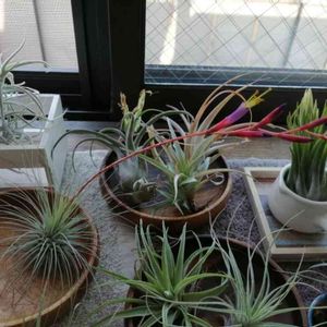 ダイソーチランジア達が大きくなりました✨ タグ付の子はサイズ比較用のこの前お迎えしたばかりのイオナンタ。 写真の子達とそれ以外にジュンセア、プセウドベイレイ、メデューサ、パウシフォリアがいます。 ブッツィーとブルボーサ以外はほぼ全種類集めた気がします。 マグヌシアーナは星にしてしまいました…暑さに弱い子は私にはまだ難しかったようですね…😭