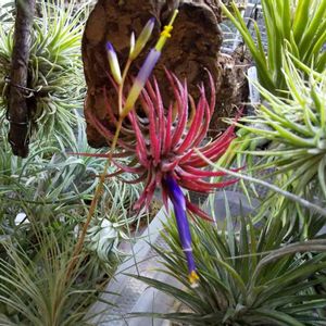 小さなエアープランツ 花の先がムラサキ色に 3月11日投稿の あの子が もうちょっとです 毎日毎日水かけて 見守って来ました 中間報告です たかが百円されど・・・ ✧˖*˘*.。*♡~♪。*゚+*.✧
