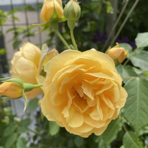 トーマスさんすっかりうちに馴染んでじゃんじゃん咲いてくれています❣️ まだ小さいのでブッシュ仕立て。来年は高めに誘引もできるかも☺️ ずっと前から居たかのような親しみやすさです☺️ 後方にピエールさん、がんばってまーす🥰