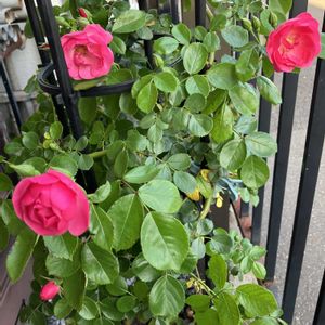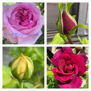 今日は暑いですねー🥵 我が家のバラも一気に開き始めましたよ!😚 【1枚目】安定の美しさ、ジュビレ・デュ・プリンス・ドゥ・モナコ。 【2枚目】紫のバラ、プラムパーフェクト。咲き始めは色が濃いですが、咲き進むと右下のように退色します。咲き方がゆるいクォーターになってるのかな? 【3枚目】ずーっと瀕死のまま、それでも毎年咲いてくれるオールドローズのスヴニール・ドゥ・ドクトル・ジャメイン。今年は今のところお花が2〜3個かな?💦💦 写真には出ませんが、深いボルドー色で素敵なんですよ☺️ 【4枚目】アンジェラ 【5枚目】グラハムトーマス つるバラも咲き始めました。 見頃は1週間後くらいかしら? これから毎日が楽しみです!😆💕