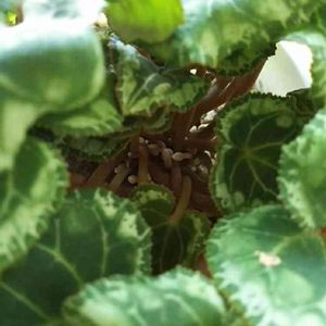 こんにちは😊 雨上がり🌂 昨日upしたガーデンシクラメンの親株さんです❣️ 昨日一緒にupすれば良かったなぁと今頃気付く私です😅 花数は少ないけど夏にもお花を咲かせてくれていました😊 他にも夏越しした子がいるんだけど…まだ花芽が上がってきません😓