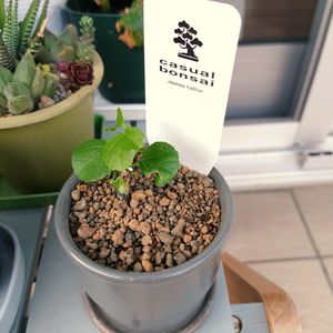 ミニ盆栽。 処分品で300円。 鉢だけでも使えればいいかなぁと、元値のほう見たら1200円! 新芽が出てるからこのまま成長しそうだし、購入。