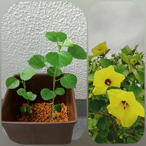 ♡いつもありがとうございます。(^-^)🎶 🏷️「実生の日」参加させて頂きます。 海沿いで拾った《ハマボウ》の種を蒔いてみました。 💛アオイ科、フヨウ属 🌱約半年経った初夏に嬉しい芽が出てくれました。(^o^)🎵 丸く可愛い葉が増えて きて楽しみな今後です。(と、いっても右のように綺麗な花を咲かせられるかどうか自信がありません。😰) ☆2022/9/3撮影📱