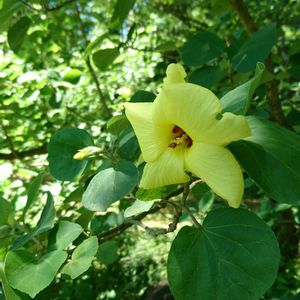 オクラやハイビスカスに似ている このレモンイエローの花は 「ハマボウ」 海辺に自生する落葉低木樹 (横浜市子ども植物園にて撮影) 今年の春から子ども植物園の「みどりの学校(小学5,6年生対象の自然観察やクラフトなどの体験教室)」のサポーターをしています 今日は子ども達とグリーンカーテン作りや顕微鏡を使って植物の観察…… サポーターをしながら子ども達と一緒に学んでいます