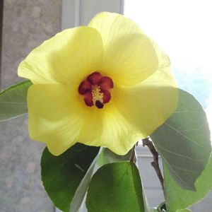 ハマボウ💛🍀 ずいぶん前に知人から頂きました😊 塩生植物で、海の近くで自生するらしく、とても強くて、全く✋はかけないのに毎年時期になると咲いてくれます アオイ科フヨウ属で、学名は、”Hibiscus hamabo” 💠ハイビスカスっぽい感じ~ですね😊 落葉木なので、葉はカラツカラになり、冬は淋しい白っぽい棒になります😁 お花の色が綺麗な黄色で可愛い💛**