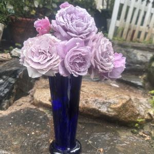 おはようございます✨✨ ブルー系のバラを花瓶に。 🌹ノヴァーリス 🌹ブルームーン 🌹シャレード 素敵💓