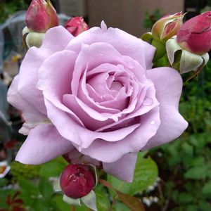 . 青バラ好きの方必見! 定番4品種の咲き比べ ~青紫編~ ①ノヴァーリス(2010年、ラベンダー) わずかに尖った花弁の先が透きとおるような、 ニュアンスカラーが美しい青系のバラです。 耐病性が高い青系のバラの代表品種のひとつです。 . . ②カインダ ブルー(2015年、モーヴ) ボリュームのある花が房になって咲く、 丈夫な品種です。 アンニュイなモーヴカラーから 『kind of blue(なんとなくもの憂い気分)』と 名づけられました。 . . ③令の風(2020年、ラベンダー) 波状弁の花姿が涼し気な風をイメージ。 中心にやわらかいミルクティー色がのることがあり、 優雅な大輪でありながら慎ましさも感じさせます。 . . ④しのぶれど(2006年、青藤色) 丸弁カップ咲きで、 ふわりと風にそよぐような風情のあるバラです。 『しのぶれど 色に出でにけり わが恋は』という 平兼盛の和歌より名づけられました。