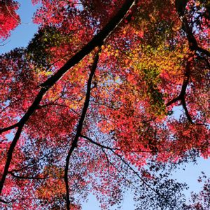 《 平林寺の紅葉 》② 空を真っ赤に染めて 青空を紅葉で独り占めしているほどに艶やかなモミジです 微妙な色彩の変化を楽しめるのも、葉にあたる光と翳りのおかげですね☺️ 平林寺は臨済宗の禅寺で、紅葉の時季や正月に境内をゆっくりと散策すると、日頃のストレスが癒やされてきます 東上線と西武池袋線の中間にあり、車なら川越街道を走れはすぐに分かります 正門前の有料駐車場(500円) はとても広く、ほぼ駐車できるでしょう。また、少し離れた野火止市役所駐車場も500円で駐車可能です。 細いバス道を挟んで、向かい側には、これまた紅葉で有名な睡足軒(すいそくけん)があり、両方を楽しめます☺️