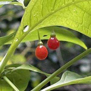 ハダカホウズキの実 ナス科ハダカホウズキ属 実の果柄が枝分かれせず それぞれ、葉腋から出ているので ハダカホウズキのようです