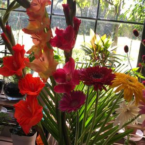 色とりどりのグラジオラスとガーベラを飾って見ました😊💕