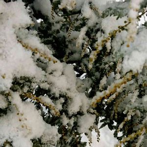 ミモザ 蕾も大きくなってきました⤴ 雪に耐えています💦