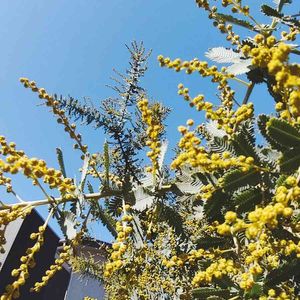 空が青~い🟦 ミモザが気持ち良さそう😆春を待ってるよ~🌸