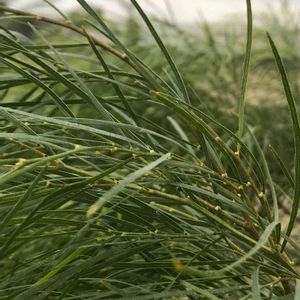 アカシア ゴールデントップ。 咲きました! 春咲きでは無く、今からお正月くらいまで咲く変わり者⁈です。 あっ、冬咲き種でしたね。失礼。 葉っぱは、まるで松の様。 アカシアって奥が深いです…。 品種は700種以上あるらしい…。