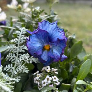 神戸べっぴんさんビオラ「青の幻想」 今シーズンお迎えのパンビオはこれで終わりかな~😅 (もう置く場所と鉢が無くなりました🤣) 青の幻想は毎年上手く育てられず、春まで花が少ないままで、今年もリベンジで満開目指します😤
