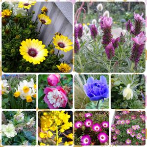リビングストンデージー✨🌼✨ メタリックな輝きです(☆∀☆) ネモフィラとハナニラさんもちょこっと顔出し💕