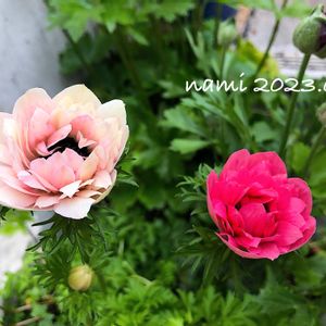 おはようございます😊🌸 よく晴れた朝です 3年目のラックス"アリアドネ" 🌸🌸🌸 今年も可愛いお顔が見れました😍 左下の蕾は同じくラナンキュラスの"テネラ" こちらも3年目♥️♥️♥️ もっとお顔を見せてーー😍😍