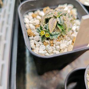 昨晩の四海波錦、群蚕、うつぼ錦だけ 咲いてるわけじゃない! ということて、現在 花が咲いている子達。 ①ケラリア ピグマエア ずーーっと咲いてます。オス・メス両方。 ②フランコイシー こっちはさらに長く咲いては枯れ、を繰り返してます。 ③トゥレアレンシス 我が家に来て馴染んだあたりで開花しました。 花が咲くと育て方が間違ってなかったんだ と感じます。 一方、子株が出ると何か間違えたかな…と 心配になります。 と、大幅遅延なうえ駅手前で止まってしまった JRの中からの投稿でした。😢