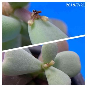 2019/7/21成長記録 7つの鉢のうち2つに小さなつぼみがついていました。 白緑色の蕾なので雄株になりそうです。
