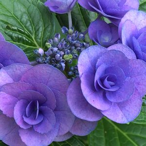地植えのアジサイ フェアリーアイ💜 バラの花のようです🥰 色幅があります💜💙💗