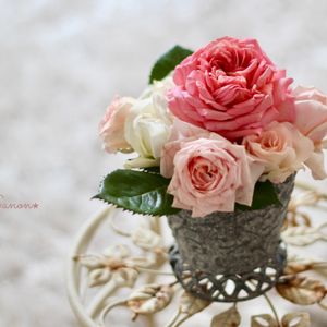 バラ ボレロ ガーデンオブローゼズ ジュビリーセレブレーション 今日は、子どもの日ということでお庭のバラで娘がアレンジして撮影しました💗💗 娘曰く「アンティークっぽくしてみた」そうです✧︎*。おうち時間が続く中、気分転換ができたようで、とっても楽しかった~と喜んでもらえて私もうれしかったです♬︎♡ 一つ前のpicのジュビリーさま💗撮影後cutしてアレンジの真ん中にいまーす⸝⋆⸝⋆ photo by daughter🌼