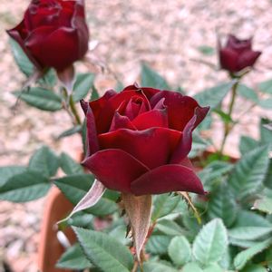 こんにちは💚 開花直前の ファニータコルダナです🌹 深紅というか、黒っぽい赤のミニバラが欲しくて 1年前に購入しました💕 コルダナシリーズは 正確にはミニバラではなく、 それよりも一回り大きい 「パティオローズ」というそうです😊