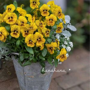桐生ファーム ビオラタイガーアイ ビオラとベロニカを使って簡単な寄せ植えを作りました 本当は白いブリキ鉢に植えたかったけど 気に入ったブリキ鉢に出会えず この白いバスケットに植え付ける事に 選んだお花は黄色と言うより やまぶき色の花びらに黒の模様の入ったビオラとベロニカ 花びらの裏側が紫色をしてます 上手く育ちますように💛🖤