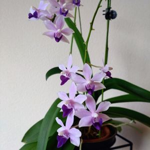 Dtps.Tzu Chiang Sapphire Murasakishikibu 6月中旬に開花が始まったミニ胡蝶蘭の紫式部✨ 青紫色の涼しげな花が夏の暑さを和らげてくれます🎐 花茎を伸ばしながら咲き進むので、6〜7輪咲いた後は1輪咲く毎に色あせた花を摘み取ります。 丈夫で育てやすく、5ヶ月近く花を咲かせるコスパ抜群の胡蝶蘭です👏👏👏