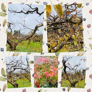 【郷土の風景シリーズ:柿の木編】 ♧柿の木:Persimmon tree 《一九献上》 「立冬に 鈴なりの柿 美々しきや」 @訳意:On the first day of winter, the ripe persimmons in beautiful shades looked delicious. 「立冬に 美味しく熟れた 柿食うや」 @訳意;Today is the first day of winter, the day to eat ripe persimmons. 📝この写真画像は、近くの天理教教会の中庭の柿の木にたくさん実が成っている様子を撮ったものデス🐶 熟れ加減のよい食べ頃の立冬の日に収穫されるとのことでした。 ちなみに50個以上は成っていました😺 ✍️Works:Poetaster Kazyan//筍歌人:藪中和堂 【豆知識】 📝柿のシーズンが終わりに近づくと、柿の木に1個または数個だけ残された柿を見かけます。 皆さんもそのような風物詩的な光景を見たことがあるのでは⁉︎ これは「木守り柿」と呼ばれています。 木守り柿は、収穫後の木の上に、柿の実を1つ、もしくは数個残しておくことをいいます。 この残った柿を、「木守り柿」と呼びます。 「きもり」や「きまもり」、「こもり」などと読みます。 木守りは、柿以外でもミカンやその他の果物でも行われることがあります。 📝なぜ「木守り」を行うのか? 木守りには、2つの想いが込められていると言われています。 🙏柿の木への感謝 ひとつは、柿の木へ感謝と願いを届けることです。 その年、たくさんの実りを贈ってくれたことへの感謝の気持ちと、来年もたくさんの実りをいただけるようにという想いが込められています。 🎁生き物への贈り物 もうひとつは、生き物への贈り物です。 柿の上に残された柿は、鳥やその他の動物たちが食べます、寒い冬を乗りきる生き物にとっては貴重な食料です。 自然からの恵みを独り占めせず、分かち合おうという先人たちの想いが込められています。 ✍️木守りの柿とは、日本の伝統的な風習で、柿を収穫する時にすべてをとらないで木に実を残しておくことです。 鳥のため、旅人のため、来年もたくさんなってねという豊作の願い、そして、 木に対する感謝も含まれています。 柿の葉が落ちて、実だけが残っている様子は慈愛に満ちてほんわか温かい心持ちになります。 『柿があかくなると医者が青くなる』という諺があるくらい柿の栄養価は高いようです。 先日、近所の知人からたくさん柿を頂き、また別の友人よりも頂きました。 長く新鮮な状態で頂ける方法はキッチンペーパーなどに水分を含ませて、ヘタのところにかぶせておきます。 ヘタを下にしてポリ袋にいれたものを冷蔵庫で保存しますと、新鮮で美味しく頂けます。 料理では柿をスライスした和え物とかサラダに入れたりして楽しみデス🐶 Artistic: Persimmon tree November 8,2023:past am 09:00’;📱shooting November 8,2023:past 12:45’;upload by Kazyan’s Green Studio