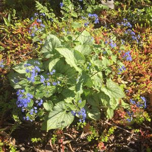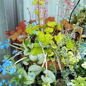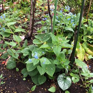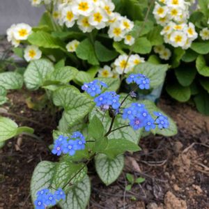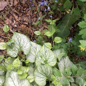 今年もブルンネラが出てきました❣️ 芽吹きとほぼ同時にお花が咲くんですよね。不思議😄 お花はカスミソウに似ています。 葉は美しく、夏場は涼しい気持ちになれます💕