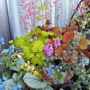 ジューンベリーの株元🌱 半日陰ですが、綺麗な葉色のヒューケラとブルンネラが明るくしてくれます✨