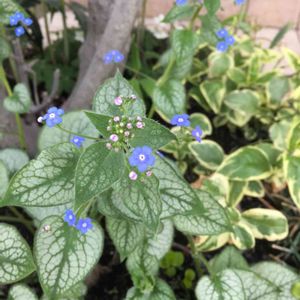 ブルンネラ ジャックフロスト🌸 花は忘れな草に似ています😊 あまり条件のよくない場所ですが、10年以上この場所で毎年咲いてくれます☺️