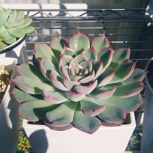 お外組多肉棚の陽当たり悪い子たちを選んでベランダにて日光浴中です( *´艸`)✨✨✨ 気持ち良さそうだね(人´ з`*)♪💕