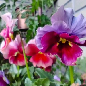 今日の風除室~生育記録📸 凍てつく朝➰日中はポカポカ☀ ①北島園芸さんOriginal Viola「 藍月」💙植付けから約3週間経過 🌱お花が増え株も成長中😊右斜めからこちらを見ている子にフォーカスして📸恋し恋い焦がれてお迎えした苗ちゃん恋は継続中💙 ②上のお花アップ!📸 美しいなぁ……(*´ェ`*)見る度にため息が💗3週間前より、黄色が減り青みが増えて来ました✨ ③違う角度から📸 集団で😊分かりにくいですが、最初の子は、右斜め後ろのぼかしの部分に。 ④大牟田尚徳さん育種「evolve エボルベ」📸 植付けから約3週間 九州は宮崎県から来てくれました💖 お花が開いていました!🤗実物の色味を十分表現出きず、本当はもっと伝えたい…😣中心から不思議なグラデーションがあって🧙🪄オレンジみがあるんです💜🧡 形も花も全部違うという、進化し続けるビオラ~これからどんな色に変化するのか🎵👀 ⑤「evolve エボルベ」違う角度から 風が吹いていなくても、まるでそよいでいるかのような🍃伸びやかな草姿🤗 株もお花大きくて、私の印象は野趣あふれる🏞窮屈ではない解放感を感じさせてくれる不思議なビオラです😊