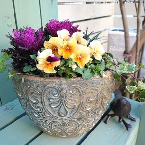 宮崎のビオラ2つ🌼 エボルベとA storyをカゴに寄せ植えにしてみました!どちらも可愛い☺️