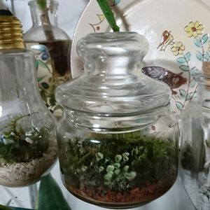 3月15日 3月半ばなのに冷えひえ なかなか外に🌱をだせません😅 自然の苔は、ず〜〜っと外に元気です 庭の片隅にはえていた玉竜に赤南天 盆栽とまでいかないけど南天は長かった ので銅線で曲げて植えてあります🤗
