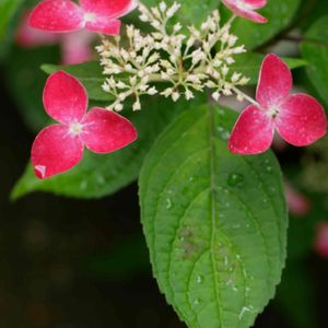 お隣さんのお庭でも出会えた、可愛く、美しい、ヤマアジサイ・紅。 アジサイ科アジサイ属。 ヤマアジサイは、沢地など水の多い地域に生息する種類。山中で沢によく見られることから、サワアジサイとも呼ばれ、植物の分類の仕方によっては、ガクアジサイの1つとされることもあるそう。 ガクアジサイと比べ、花の色が多様性に富み、花や葉が小さめなのが特徴とのこと。 GSでも紅のpic を拝見しましたが、去年、八ヶ岳の萌木の村で見た赤のアジサイも印象に残っていて、GSでも、「紅では?」とコメントをいただきました…。 紅の色が風情があり、好きにならずにいられません💕