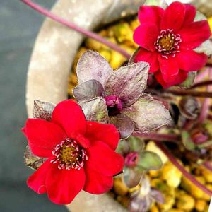 〈雪割草/烈火〉③ 可愛らしい〈雪割草〉にしては激しい感じですね!👀驚くのは葉の部分?萼かな?がゴールドですよ❗(*゜Q゜*) 正に「烈火❗❗」 もしかして「烈火の如くお怒り」でしょうかね?(*^▽^*) このところ 毎日連投ですが、お許しあれ~<(_ _*)>
