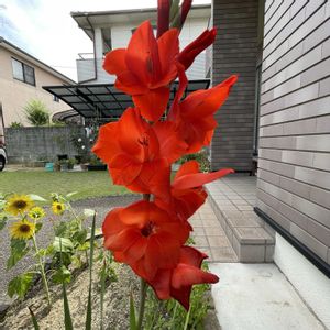 こんばんは✩.*˚ 今日は焦げるくらい暑かったぁι(´Д`υ)アツィー 余計に暑さを感じそうですが、庭の真っ赤な『グラジオラス』が咲きました!