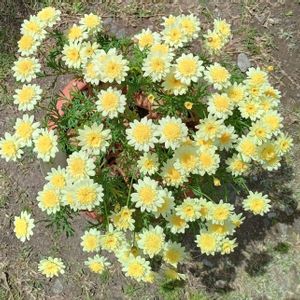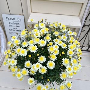 サントリーフラワーズさんの ボンザマーガレット レモンイエロー 🌼 昨年の年末にこの子だけ 玄関避難を忘れ置き去りにして しまいお花も蕾もダメに なりました😱💔 様子を見ていましたが やっと復活し、たくさんのお花を 咲かせ始めています💕 形がいびつなので株元に 控えている新芽でカットしても いいのですが、綺麗に咲いていて 可哀想なので😭夏越しの際には バッサリと剪定してあげたいと 思います✂️✨