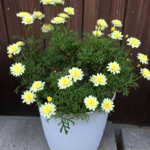 2022/03/14満開時の写真 ボンザマーガレットレモンイエロー 今は切り戻し中
