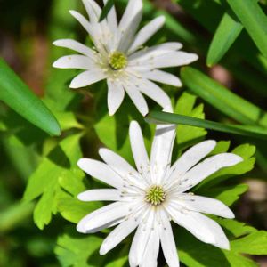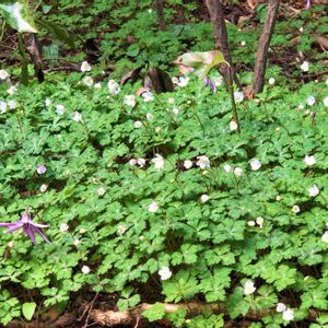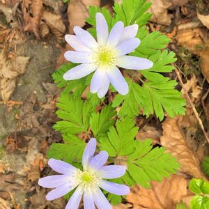 花の筑波山シリーズ🎶 全体的にはキクザキイチゲの方が多いのですが、アズマイチゲも所々にかたまって咲いています。 葉は違うけど、花はキクザキイチゲの白花とそっくりです。一番わかりやすい違いは、花の中心、雄しべの花糸の根元が濃い紫色という点ですね😆😊