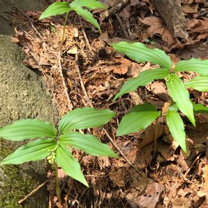花の筑波山シリーズ🎶 まだ小さいミミガタテンナンショウです。このテンナンショウは葉軸があまり発達せず鳥足状とは言えないような葉の形ですね🌿