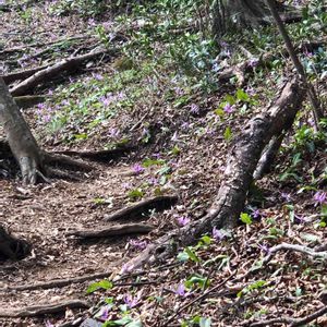 花の筑波山シリーズ🎶 もうすぐ頂上です🥾 見難いですけどピンチアウトしてみて下さいな。踏み潰さないように歩くカタクリだらけの登山道😍