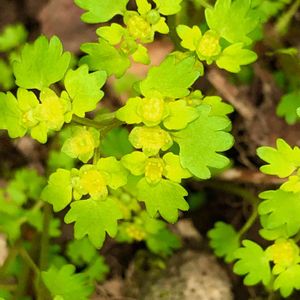 花序の淡い黄色がなんとも言えないいい感じ😍💛 これはですねえ、似たもの同士でそっくりのツルネコノメソウとタチネコノメソウのうち、タチネコノメソウでした❗️😆ポイントは根生葉です。