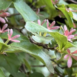 6/7 筑波山 ツクバネウツギの花も終わって、5弁の萼片があたかも花びらのように目立っています😍 花が咲いてる時から、その根元に萼片はしっかりと存在感を示してますね。 この萼片は果実が熟して落ちるまでしっかりと残っていて、果実と一緒に落ちる姿が羽根突きの羽根にソックリなことから名前がつきました。ビャクダン科のツクバネの果実と同じですね(より羽根に似てる)😊 ①の写真が分かりやすいかと思うけど、萼片の根元に付いている細い棒みたいなのが果実(痩果)です。